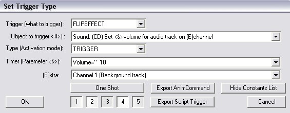 如果你使用flipeffect里的channel 2触发音乐,新的音乐将会和先前的音乐同时奏响,一般这个用在触发音效的时候,记得选择single playback,让音效只播放一次。当然,你可以把效果音乐设定成 looped playback,循环播放。想想看,如果在一个洞穴里,你再播放一个水滴滴到水里的声音,气氛就不一般了,发挥你的想象力吧。