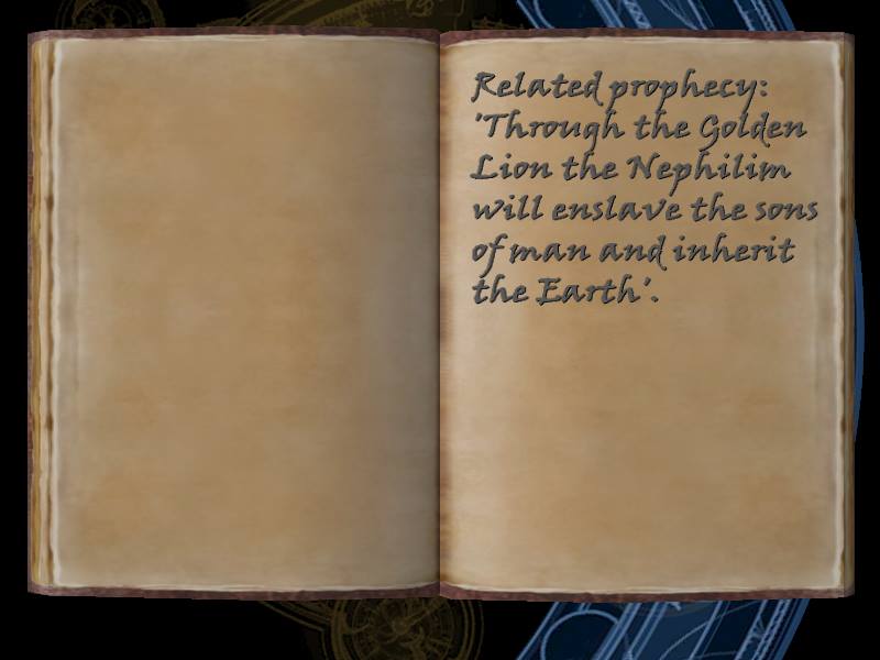 黄金狮子是关于拿非利一族幸存者的预言。预言幸存者将回归并重建拿非利一族。埃卡德特对此非常在意,他试图收集全部要素复活沉睡者,然后利用他的炼金术把他变成传说中的黄金狮子。他认为他能够承继拿非利一族黄金狮子的职责,并理所当然地成为全世界的统治者。
