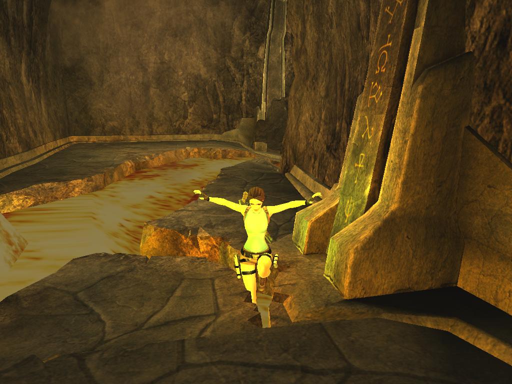- 一个图片BUG~~~卡在缝隙里面出不来了,游戏无法继续,只好重新LOAD。另外,跳下岩浆,突然之间lara从岩浆里飞起来狠狠的摔在地上一命呜呼。(心有灵犀007)