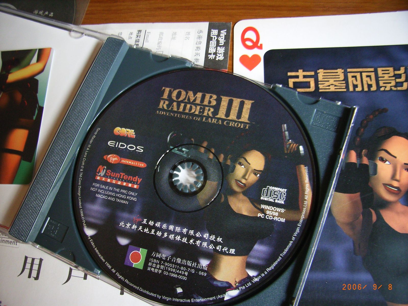 - 产品规格:《古墓丽影 III》光盘、全彩中文使用手册、主题年历卡、劳拉巨型扑克牌