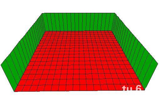 呵呵,是不是不爽啊,下面就是显示天空的关键啦!我们重新打开Face Edit按钮进入可贴图状态,用鼠标选中下面调色板中的黑色,然后将天花板和墙壁用黑色贴图,如下图。