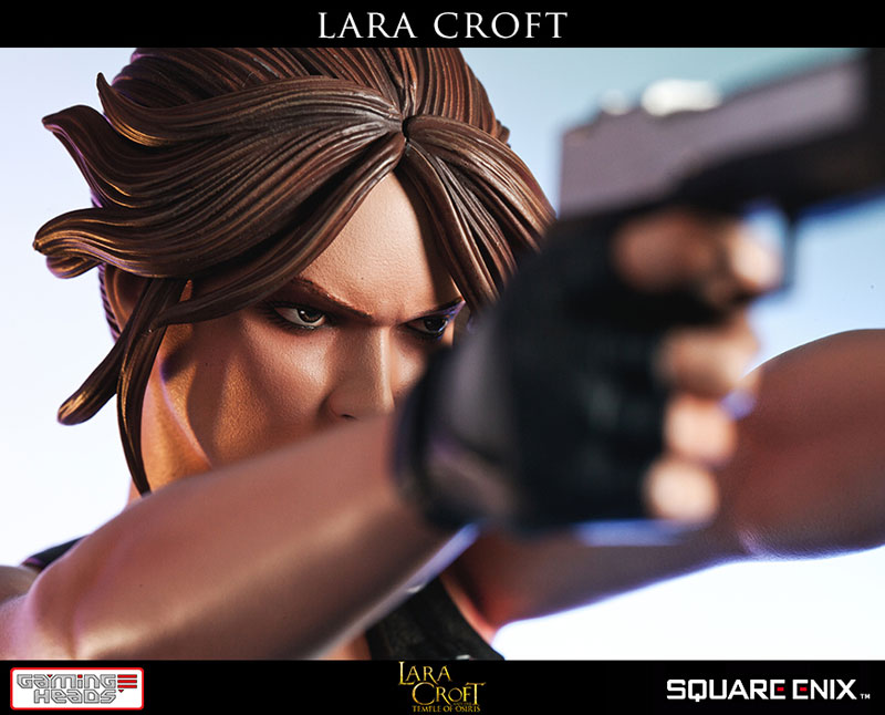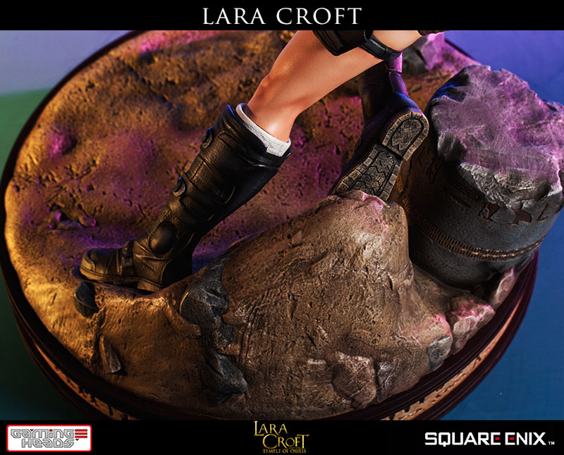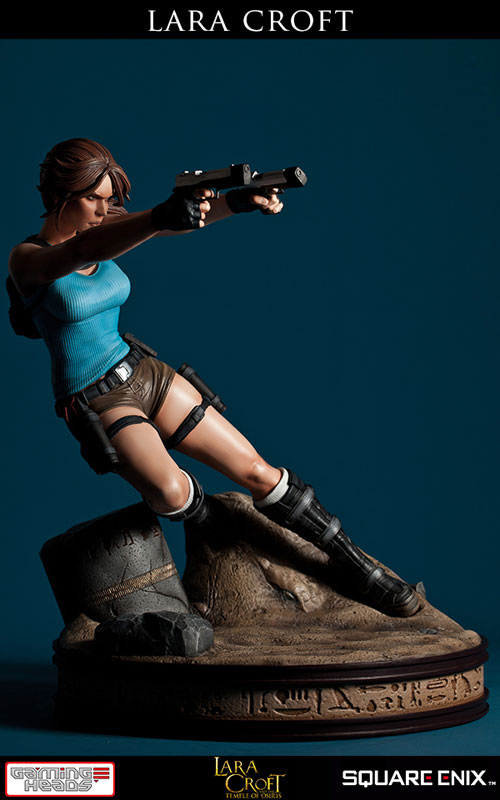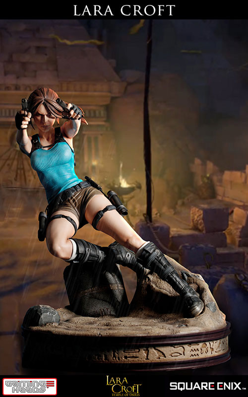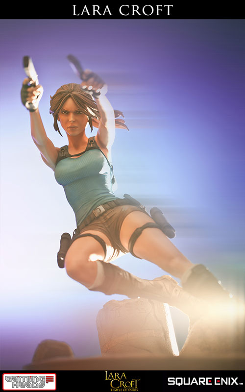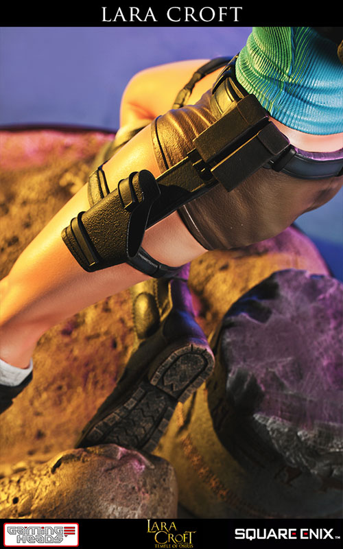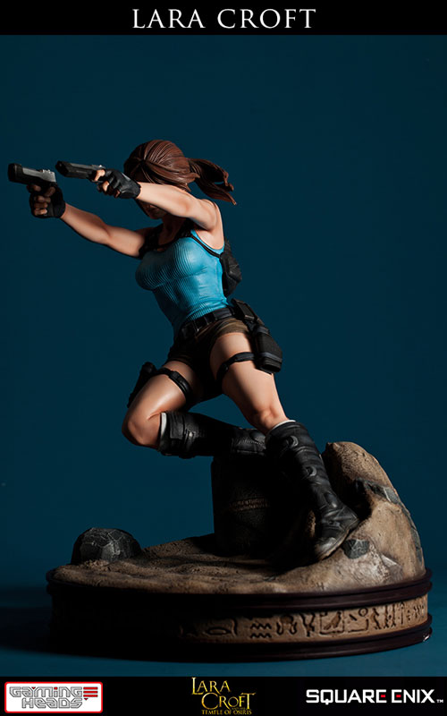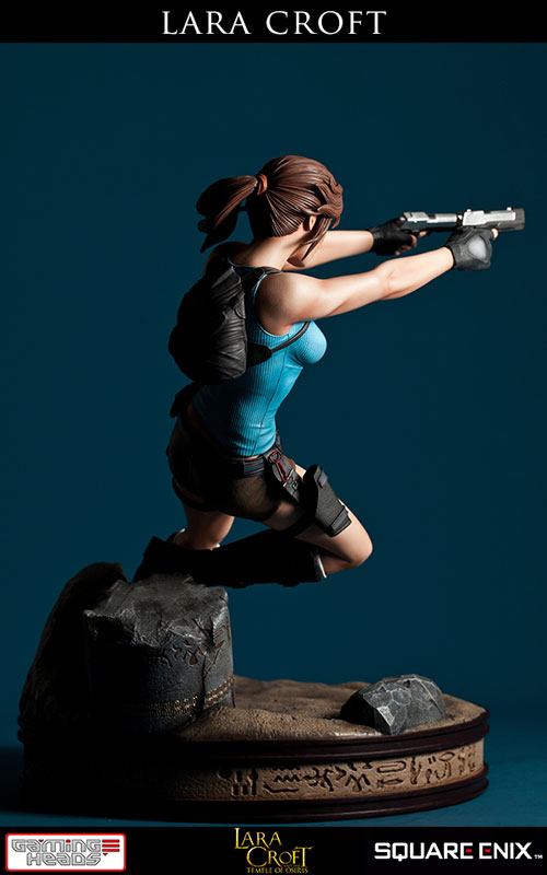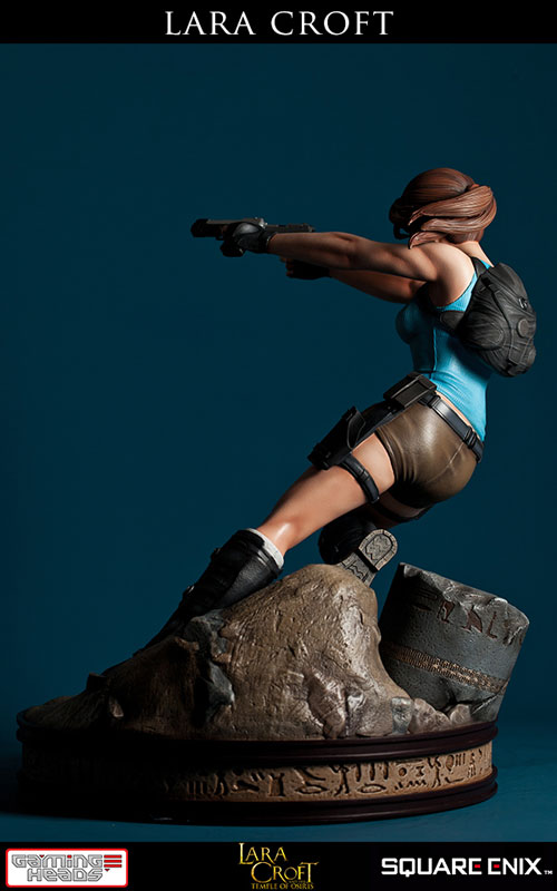 这个充满动感的手办,呈现的是作战中的劳拉。她正从岩石上跳下,并用双枪射击前方的敌人。她身着经典短装,头发梳成了长长的麻花辫,而古埃及遗物则在她身后浮现。底座上则铭刻着古埃及圣书体文字。
