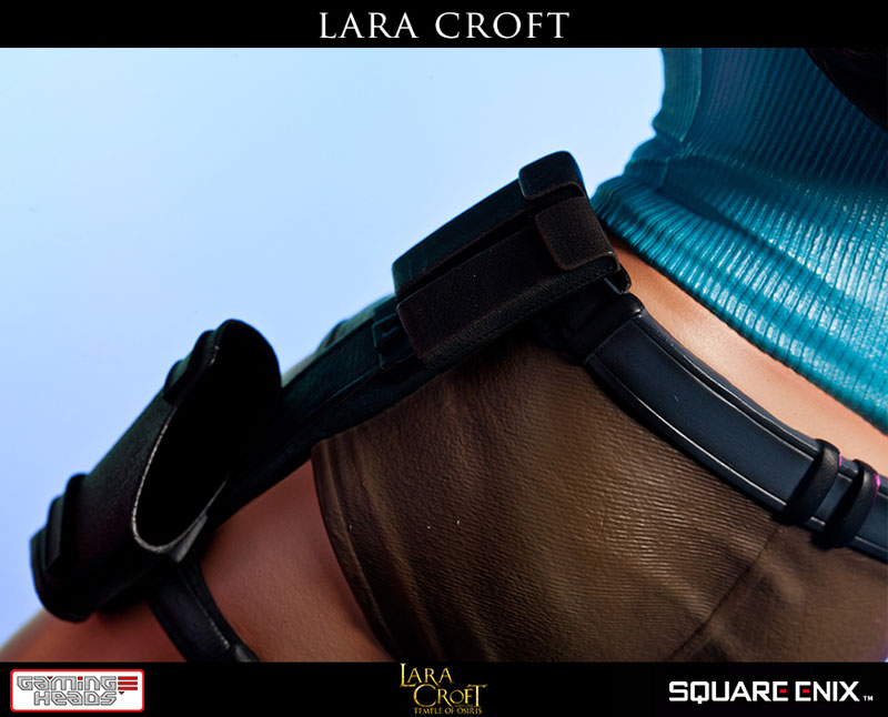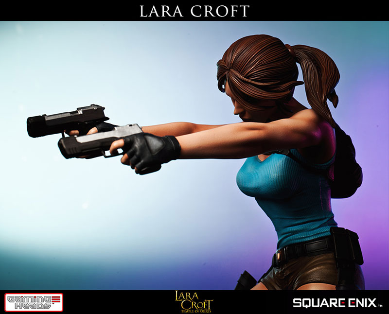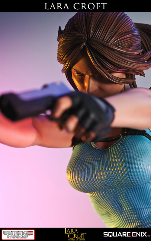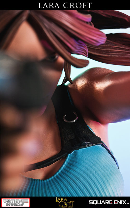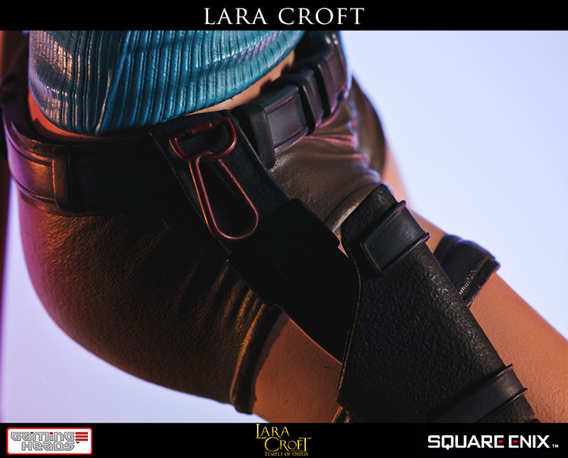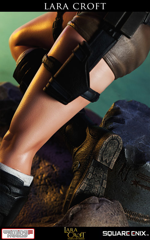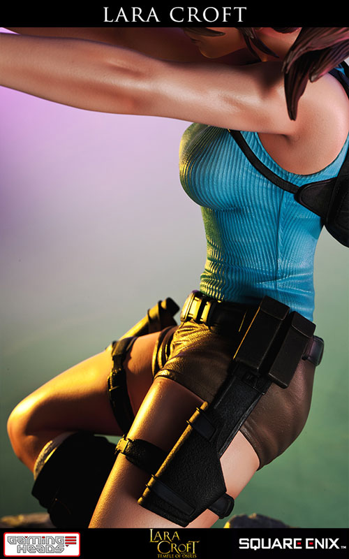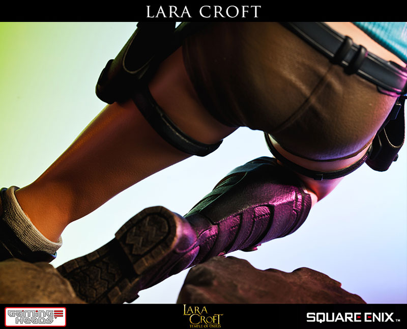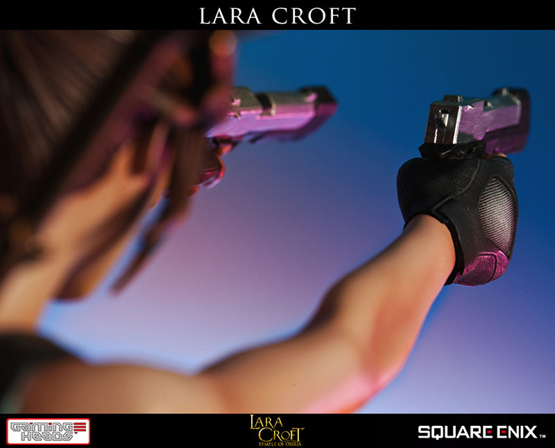 这个充满动感的手办,呈现的是作战中的劳拉。她正从岩石上跳下,并用双枪射击前方的敌人。她身着经典短装,头发梳成了长长的麻花辫,而古埃及遗物则在她身后浮现。底座上则铭刻着古埃及圣书体文字。