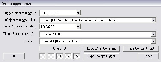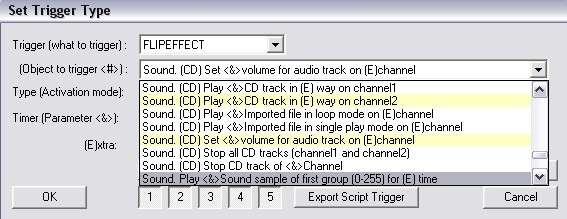 如果你使用flipeffect里的channel 2触发音乐,新的音乐将会和先前的音乐同时奏响,一般这个用在触发音效的时候,记得选择single playback,让音效只播放一次。当然,你可以把效果音乐设定成 looped playback,循环播放。想想看,如果在一个洞穴里,你再播放一个水滴滴到水里的声音,气氛就不一般了,发挥你的想象力吧。