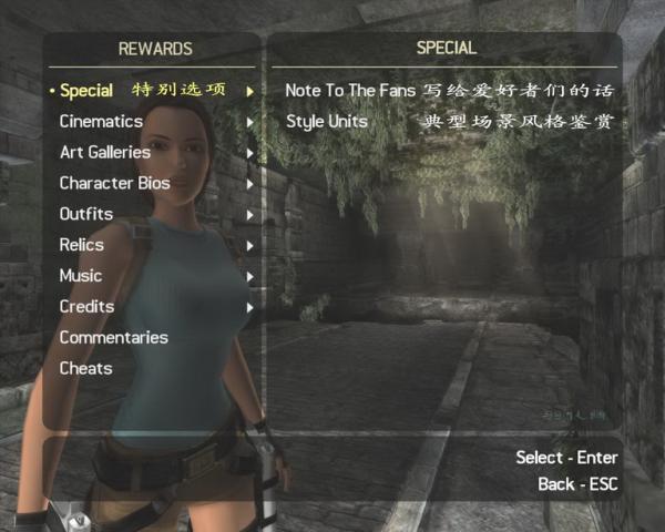 注意哦,那个“特别选项”下的“典型场景风格鉴赏”,可是100%破关后所解锁的,混合游戏四大地域场景设计风格的附加欣赏关!