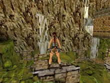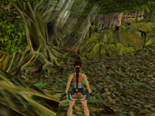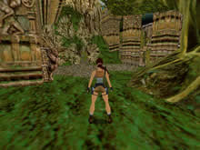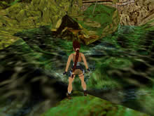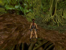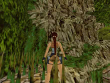 来到那颗大树的附近,在其后面有处石台可以攀上,上面是动画中打开的铁门,进入,此时背后刚才进来的铁门关闭,这个房间里面又有一处手擎,搬下后立即跳到身后正对的凹壁处(后退,后空翻,如果用攀爬会损血),躲过旁边挤来的钉板墙。等钉板移到另一方后,从钉板原来所在的地方攀上,点燃照明火折,可以看到一个滑索,利用滑索滑到对面(按住动作键劳拉将抓住滑索,不要松开动作键直到劳拉安全到达对面,如果不甚落入水中,就要重新推上水边的手擎,按照原来的路线再次来到滑索处),攀上前面的岩石,向里冲跳到另一块岩石,最后落入丛林深处(建议拔出霰弹枪,快捷键2)。